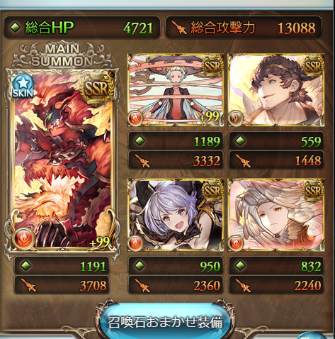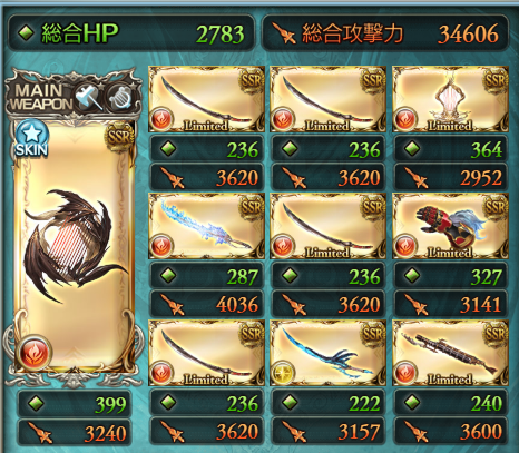 メインはドラゴニックハープ。奥義効果がとても刺さるのでこれ以外の選択肢はあまりない感じ。火力はイクサバの本数でカバー。